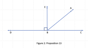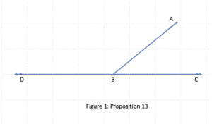 In figure 1 Euclid stated the objective as follows:  “ I say that the angles CBA, ABD are either two right angles or add up to two right angles.  In Modern Geometric Notation, we would say: